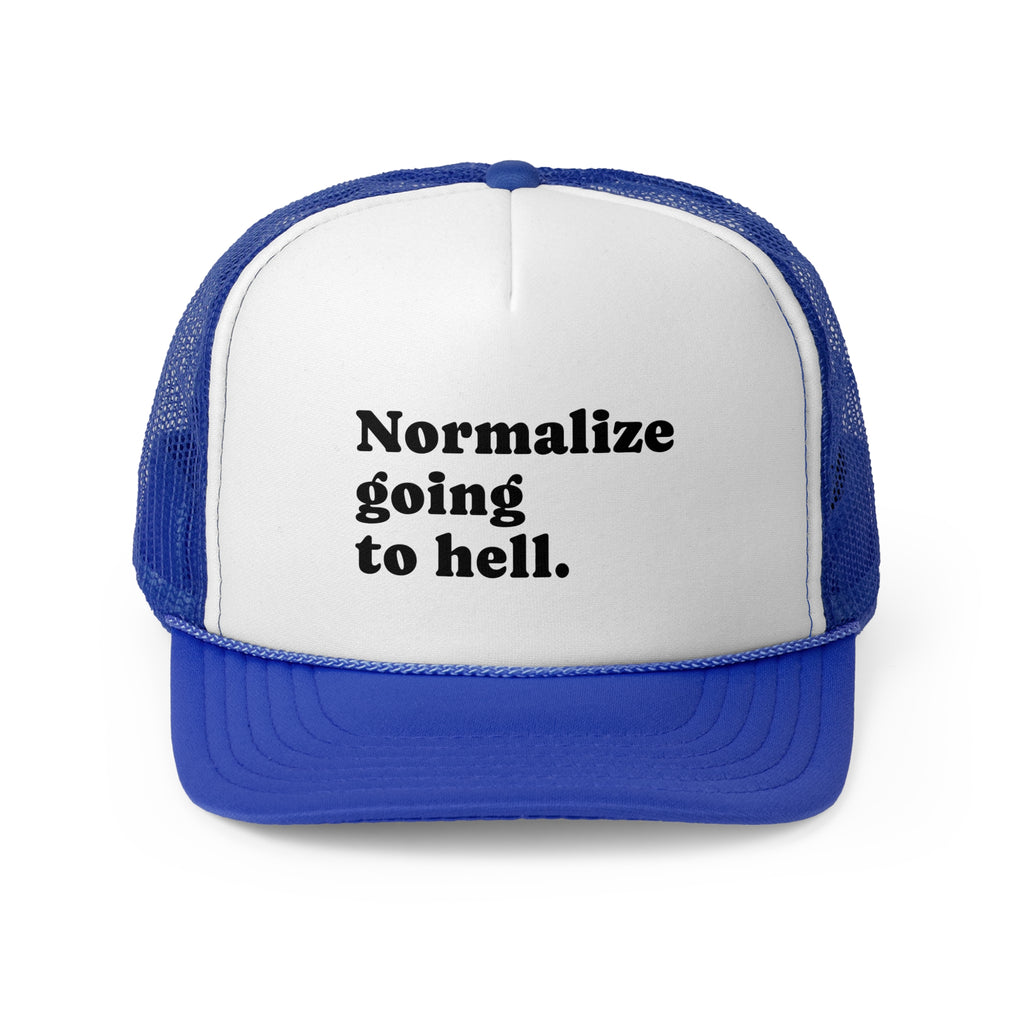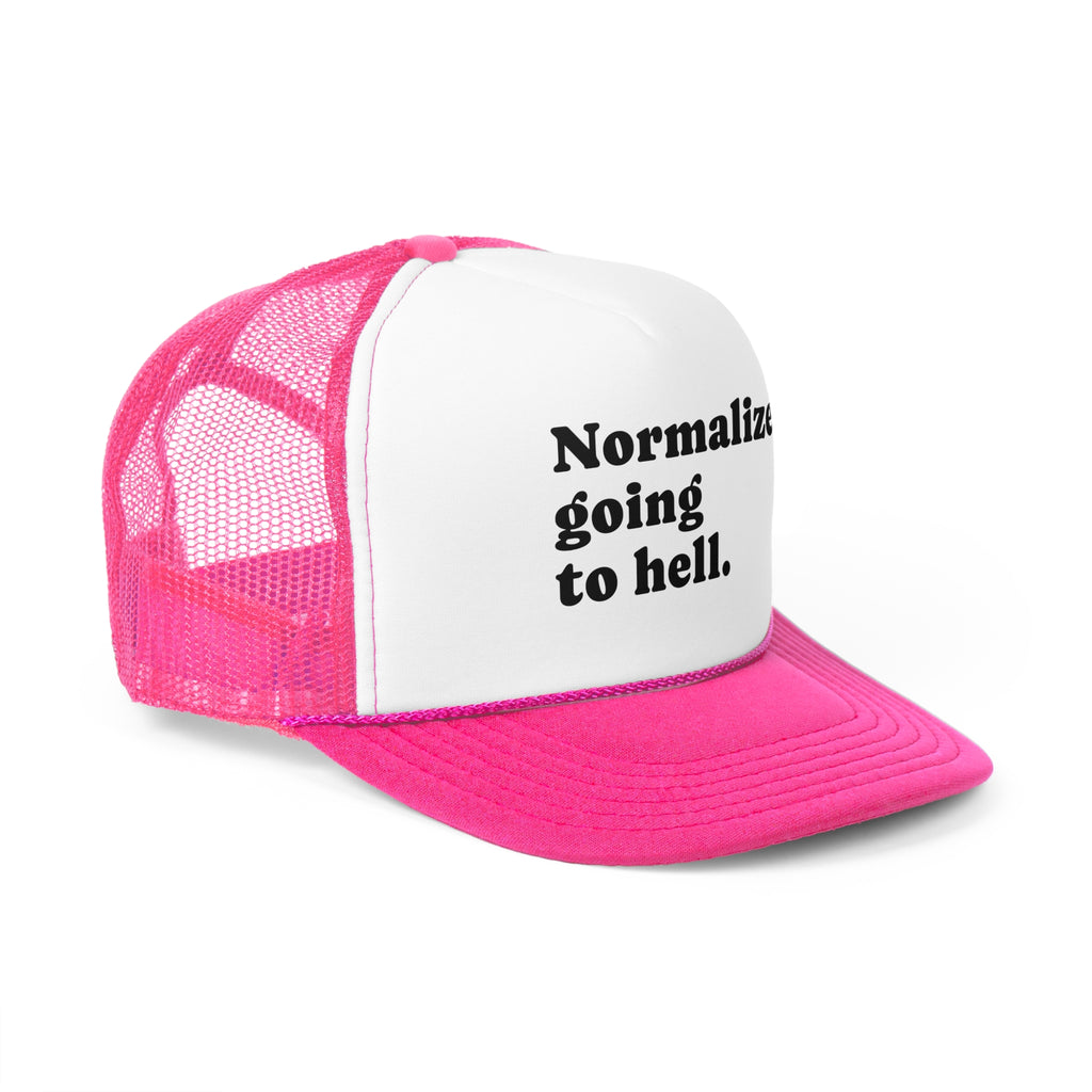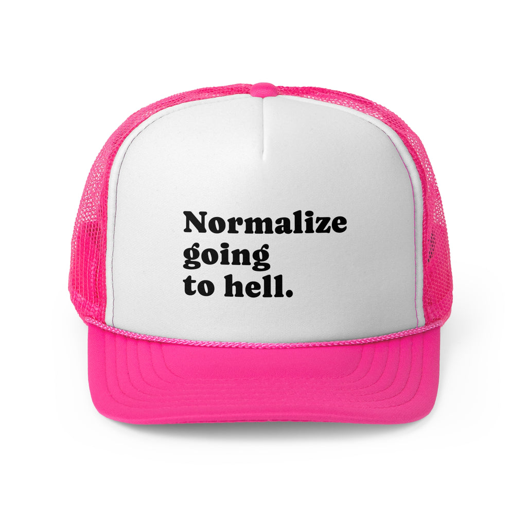 Embrace your inner demon with these vibrant trucker caps! We might be going to hell, but we're okay with that. Bold Statement Hat for Apostate Souls.