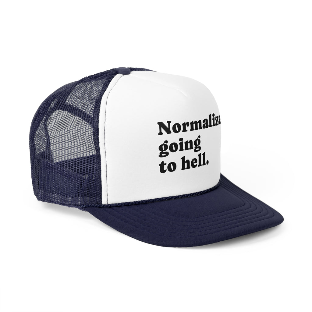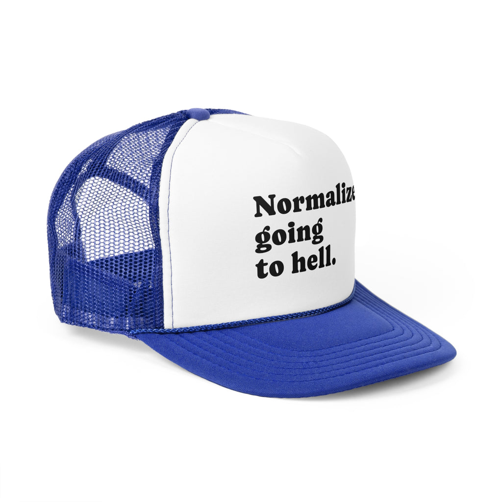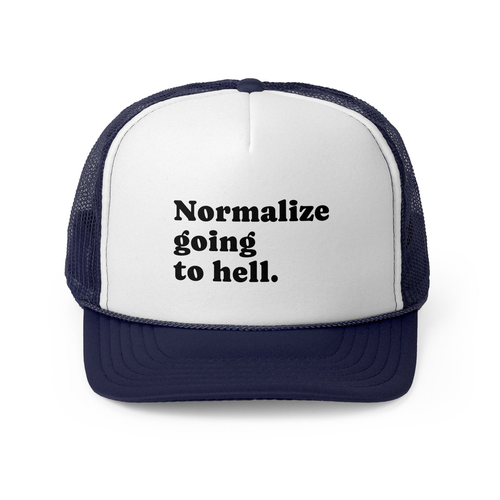 Embrace your inner demon with these vibrant trucker caps! We might be going to hell, but we're okay with that. Bold Statement Hat for Apostate Souls.