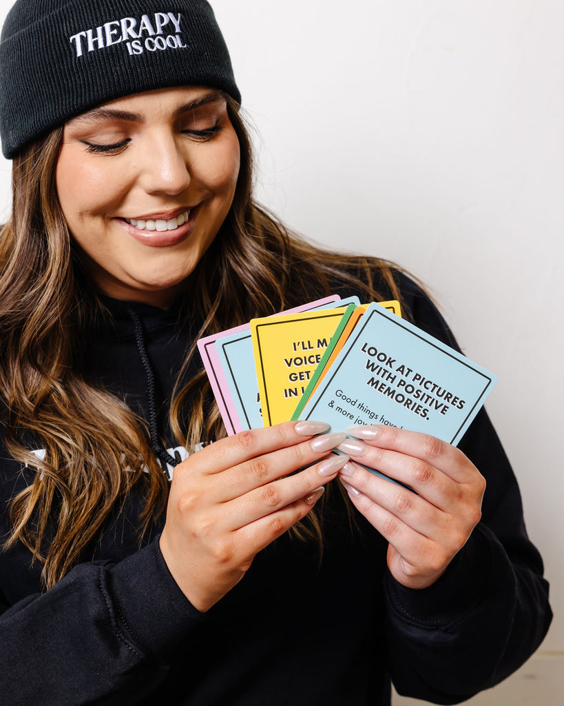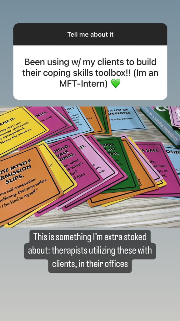 Every card in the coping skills deck is psychology-based, & utilizes different skills to