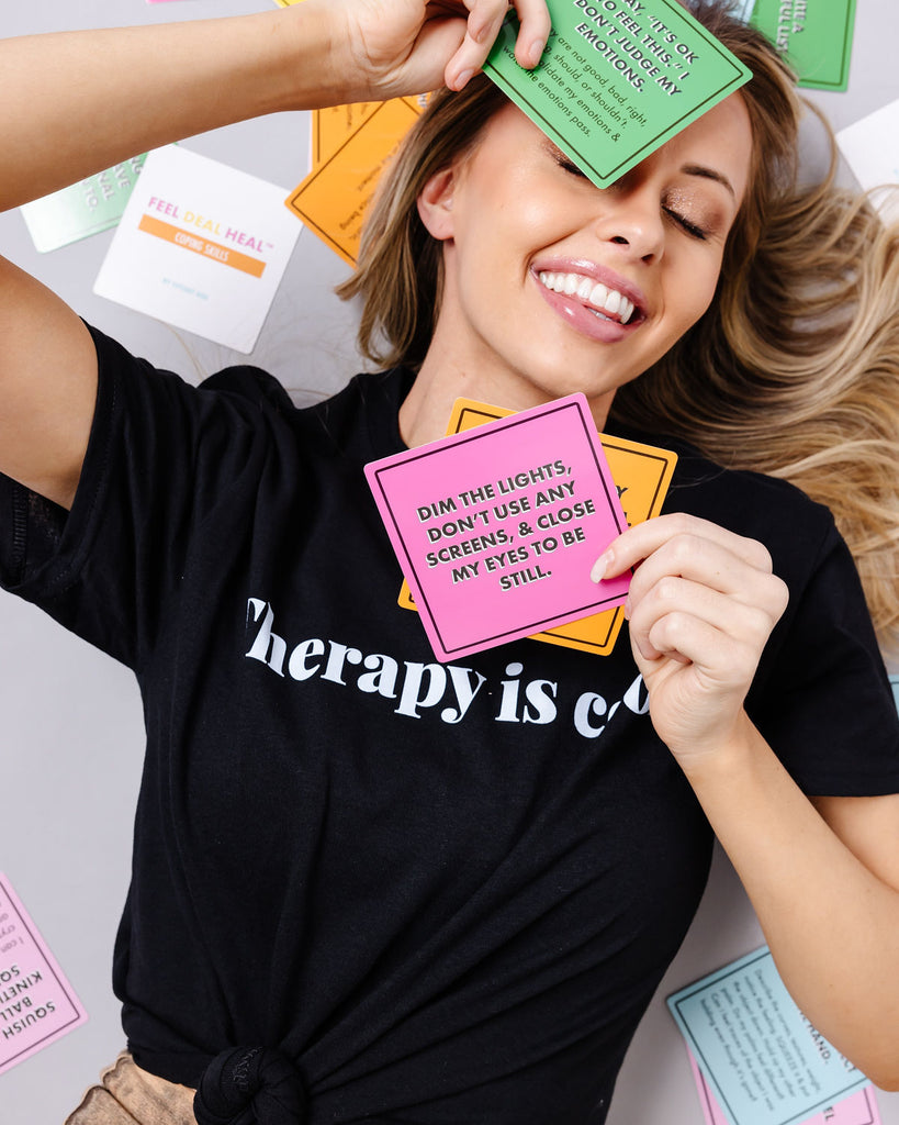 So I created the feel deal heal COPING SKILLS deck to make mental health support accessible so you finally FEEL empowered, equipped, prepared, supported, & able to cope when you need to most.